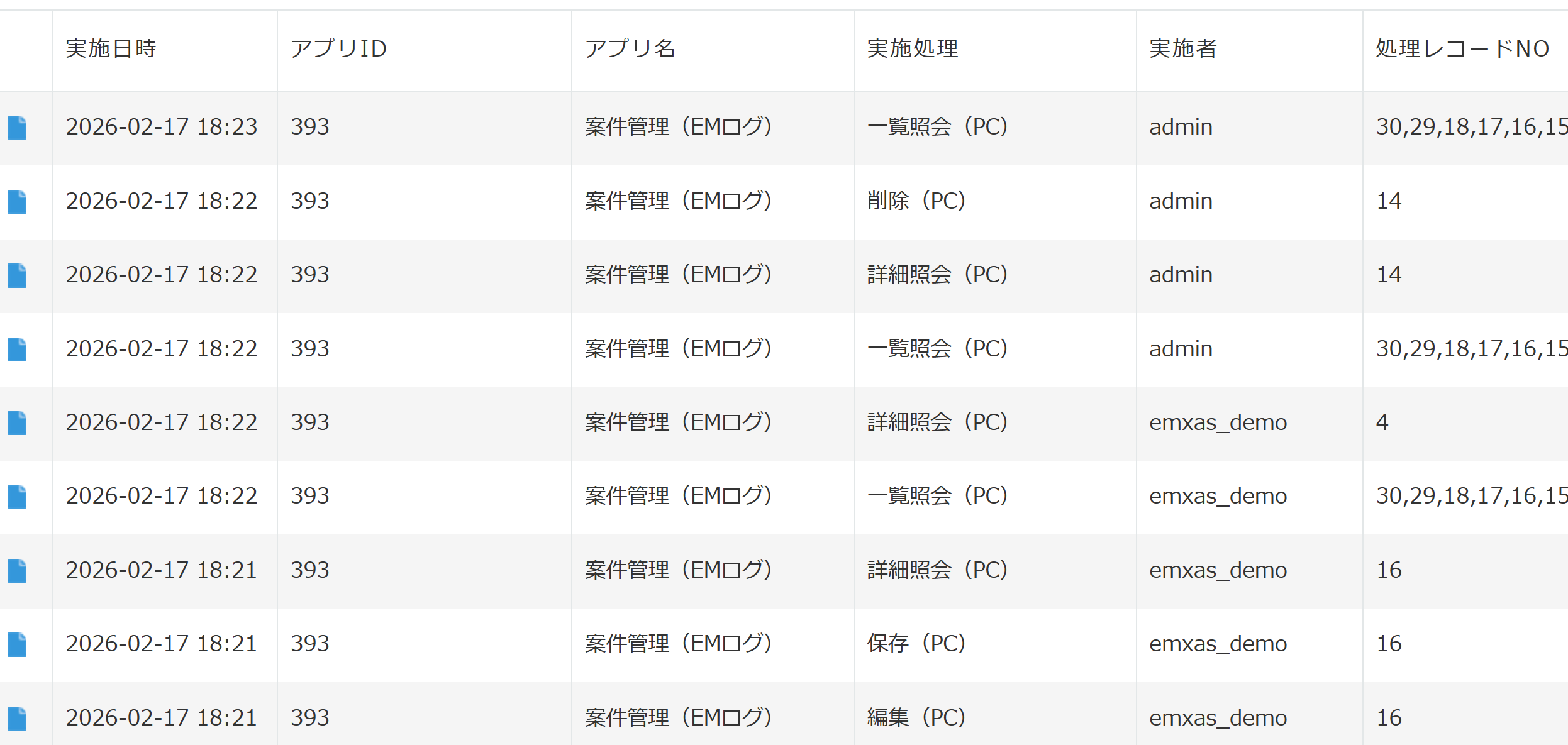 EMログを導入すれば、kintone標準機能では手が届かない「ユーザー操作の詳細」までを、専用の管理アプリでいつでも確認できます。